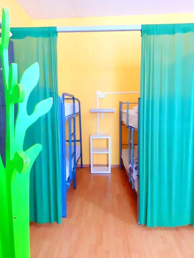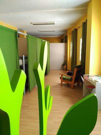 12 Bunk beds separated into compartments. The place is a ground floor with many windows with abundant light and natural ventilation. Large dining room - living room. All adapted for people in a situation of functional diversity.